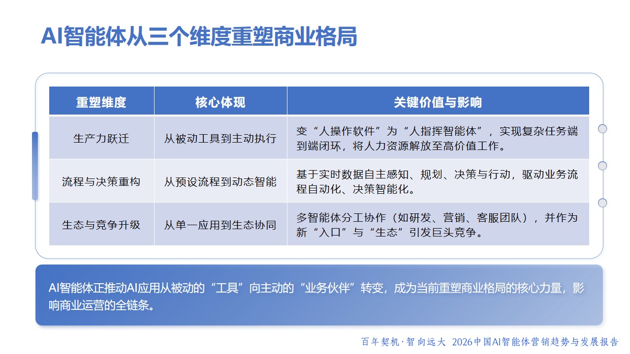 上一篇:AI智能体重塑商业本质,《2026中国AI智能体营销趋势与发展报告》(蓝皮书)正式发布